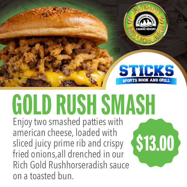 Spice up your gameday at Sportsbook Bar & Grill! Kick things off with shareable appetizers for the whole crew or an entrée just for you—the self-serve grill has all your game day favorites. From wings and loaded nachos to smash burgers hot off the grill!